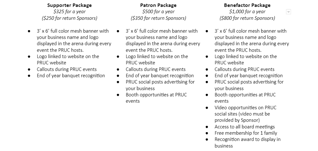 For more information about PRUC, you can visit piedmontroundupclub.com. If you are ready to sponsor, please email piedmontroundupclub@gmail.com and we will begin setting up your order and banner design!